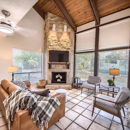 The spacious 2-bedroom Tbm 112 Among The Oaks New Braunfels apartment includes a patio and is located around 6 km from the two - mile Comal River. With access to a tennis court and a golf course, the apartment is ideal for active guests seeking recreation options.